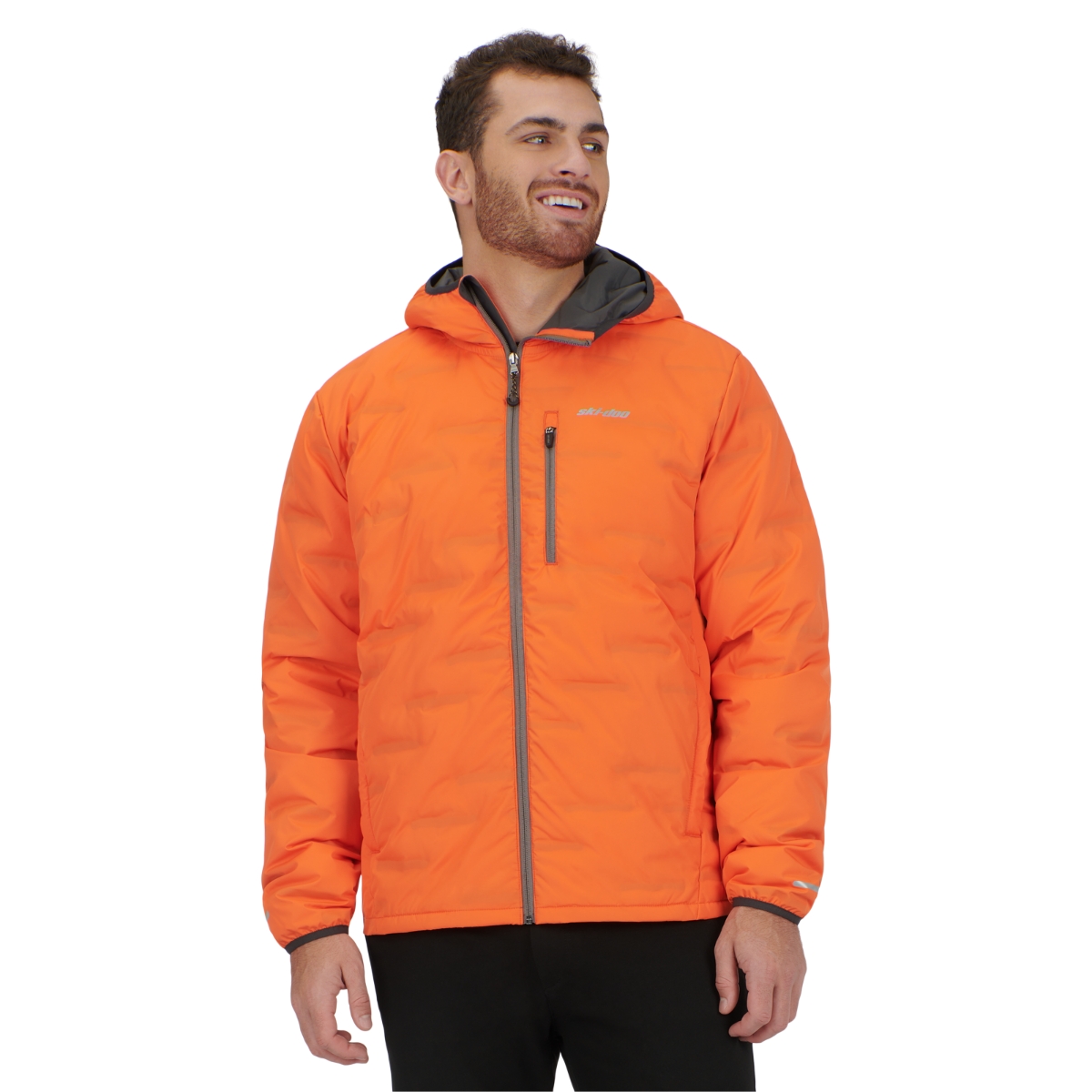 Tämä takki on valmistettu 100 % polyesteristä ja siinä on 90 % ankanuntuvan ja 10 % höyhenen eristys, joka tarjoaa erinomaisen lämmön. Rintataskussa on Ski-Doo-logolla varustettu vetoketjun vedin, ja vasemmassa rinnassa on heijastava Ski-Doo-logo. Taskuissa on fleecevuori, joka lisää mukavuutta, ja takin sisemmässä etuläpässä on lämpösiirretty Ski-Doo-logo.